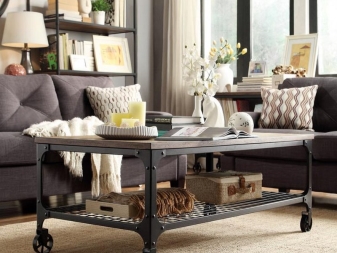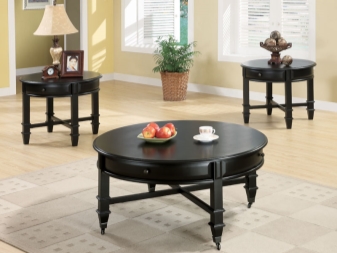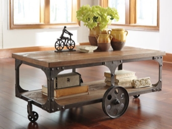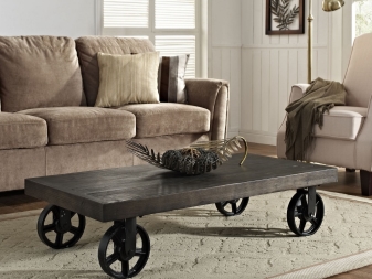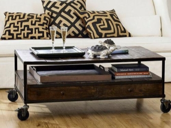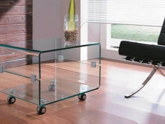 Всички маси за кафе могат да бъдат разделени на стационарни и мобилни (мобилни). Мобилните модели са оборудвани с метални или пластмасови колела, те се избират според теглото на продукта. Металните са много надеждни. Самите колела могат да бъдат декоративни елементи (например колела със спици). Има следните видове мобилни маси за кафе: