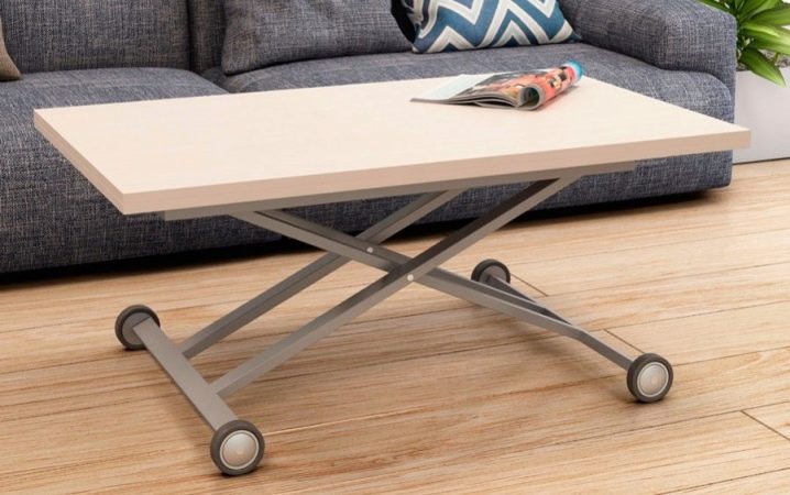 Първите маси на колела бяха сервиращи маси. Височината им трябваше да е удобна за транспортиране на храна и съдове. Съвременната масичка за кафе трябва да съответства на позицията на човек, седнал на диван или фотьойл. По принцип височината зависи от това за какво е предвидена масата. Ако декоративната функция е на първо място, тогава масата може да бъде много ниска (от 15 см). Той няма да разделя събеседниците и може да действа като преса, свещи или ваза. Ако масата често се използва като маса за хранене, височината й може да бъде около половин метър или малко по -висока. Телевизорът или лаптопът трябва да бъдат инсталирани по -високо (до 80 см). Стандартна височина на масата – 50 см.