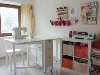 - В работилница за такава мебел ще бъде удобно не само да драскате на пишеща машина, но и да правите шарки, а белият й нюанс ще се впише във всяка цветова схема на стаята