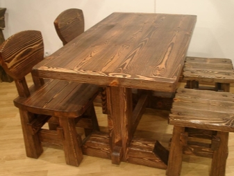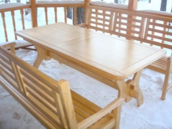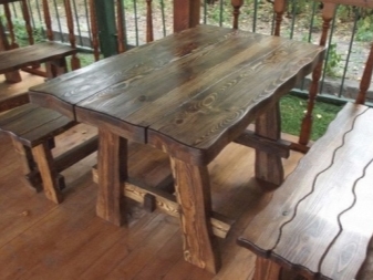 - Масата от масивен бор е подходяща за терасата на селска къща. Ако терасата е отворена, тогава мебелите за нея са импрегнирани със специални съединения – за устойчивост на влага и насекоми. Простотата на дизайна ще създаде усещане за близост до природата.