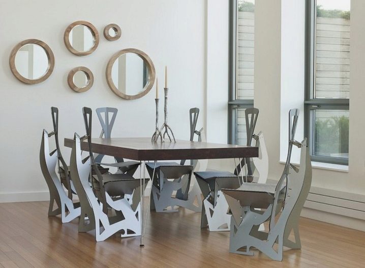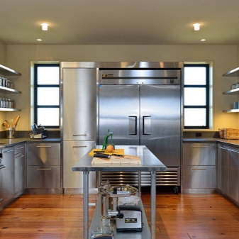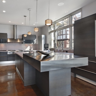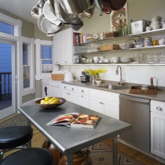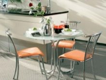 Металната маса в подходящ дизайн се вписва идеално в интериора на кухнята. Масите са особено популярни в кухните. на кръгли хромирани крака. Тази конструкция е много стабилна и здрава. Плотът може да бъде изработен от дърво, пластмаса или метал.