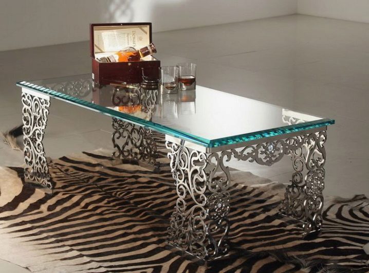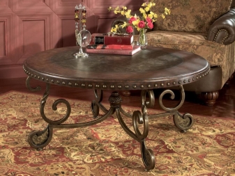 Декоративна елегантна маса, изработена от метал или с метални елементи, ще бъде напълно подходяща в хола или спалнята. Поради гъвкавостта и гъвкавостта на материала, формата на продукта може да бъде много разнообразна. Масите на краката от ковано желязо изглеждат особено интересни и елегантни..