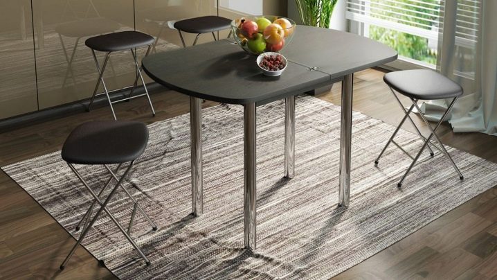 Освен сред модели мебели, изработени от други материали, сред метални маси можете да вземете и компактни опции, които спестяват свободно пространство в стаята. Тази опция например е плъзгаща се метална маса или метална плъзгаща се маса. В сгънато състояние заема много малко място.