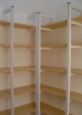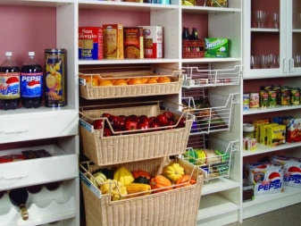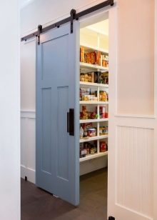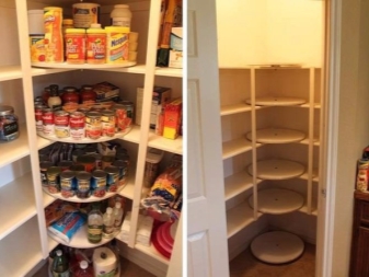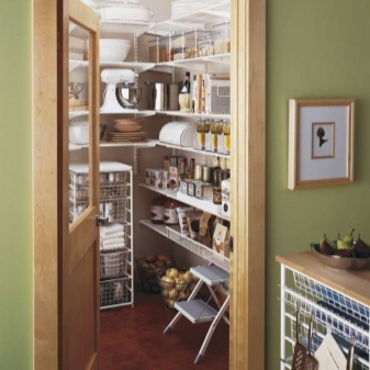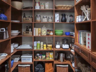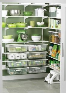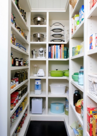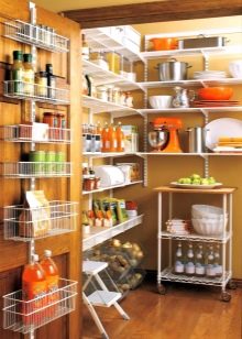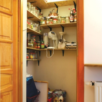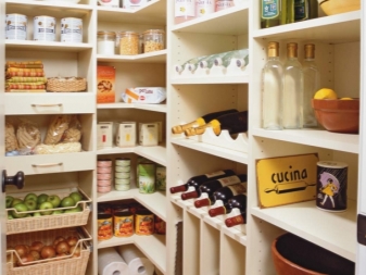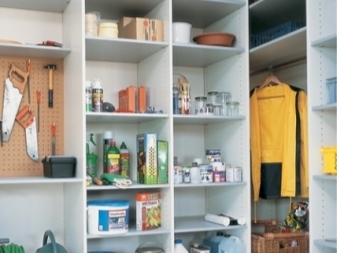 Сортовете, предназначени за монтаж в килера, са по -прости от моделите за всекидневни, кабинети и детски стаи. Често функционалността на конструкциите е достатъчно удобна, за да се поставят правилно всички неща. Ако всеки артикул е в отделно отделение, няма да е трудно да намерите необходимия артикул..