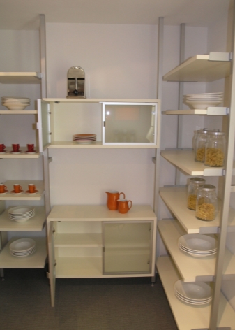 Често подреждането на рафтовете е асиметрично. Те могат да бъдат изградени на няколко нива или всяко от тях може да има отделения с различна височина. Забележителна е системата за регулиране на височината и наклона на рафтовете. Промяната на височината е удобна, когато желаният артикул не се побира на рафта.