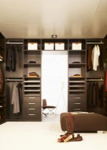 - Този модел може да служи като организатор при подреждането на килер за съблекалня. Дизайнът включва съхранение на обувки, отделения за кутии и рафтове за дрехи.