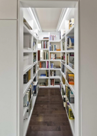 - Помислете предварително за системата за съхранение: вземете предвид всеки елемент, който може да се съхранява на рафтовете на стелажа, спестявайки пространството на апартамента (къщата) от усещането за претрупване.