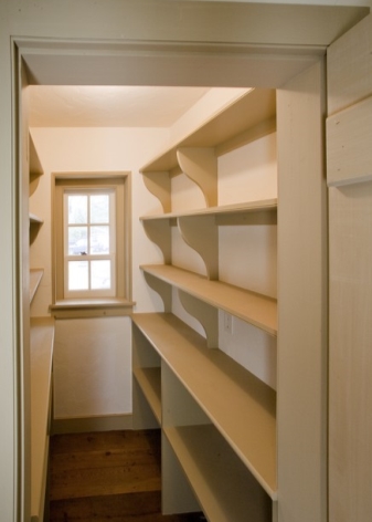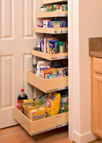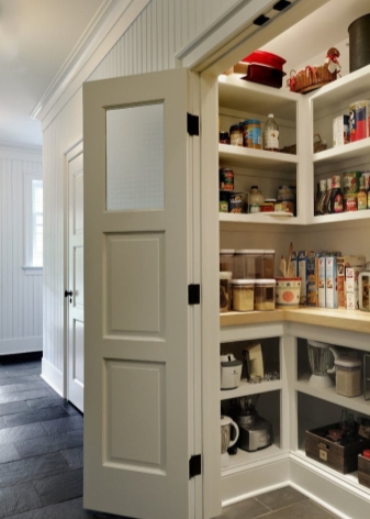- Ако ниша е запазена за килера, струва си да използвате вградени рафтове. Такъв багажник ще бъде много практичен, заемайки минимум място..
