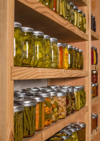 Можете да закупите дървена конструкция за съхранение на консерви с домашно консервиране..