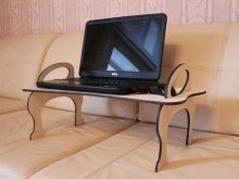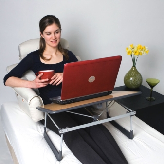 Легла за лаптоп прилича на стандартна тава за закуска. Видът и размерите на дизайна също са много сходни. Въпреки факта, че този вид продукт е с компактни размери, външният му вид трябва да е в хармония с цялостния стил на интериора. Метални модели – избор на модерен декоративен дизайн.