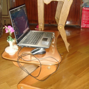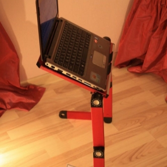 - Трансформатор. Най -универсалната стойка за лаптоп. Ако желаете, потребителят може да промени височината на краката, наклона на плота и други параметри.