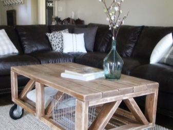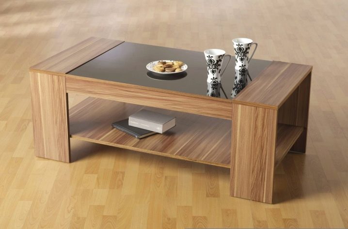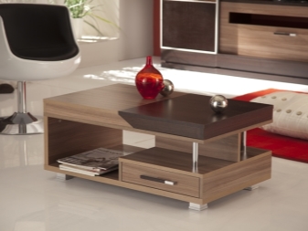 - С рафт, който може да служи като стойка за различни предмети или списания. Функционалните характеристики на този модел са по -високи от тези на обикновените маси за кафе, така че те могат да се считат за добър заместител за тях..