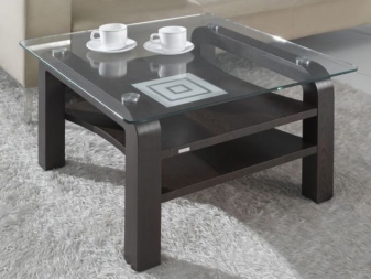Ако натоварването на масичката за кафе е минимално, тогава можете да изберете продукт със стъклен плот – такава маса ще изглежда лека и по -елегантна и ще се впише във всеки стил. Такива модели често са оборудвани с дублирани стъклени рафтове. В същото време материалът може да бъде напълно прозрачен и потъмнен матиран и дори многоцветен. Те се нуждаят от лесна поддръжка, за да се избегнат разлятите петна от кафе по повърхността.