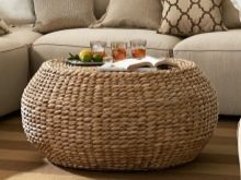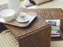 Тези маси са подходящи за летни вили, могат да се поставят в беседката и на откритата тераса. Такива маси за кафе, изработени от естествени материали, са в голямо търсене както поради стилния си външен вид, така и поради цената – плетените мебели са по -евтини от продуктите от естествено дърво..