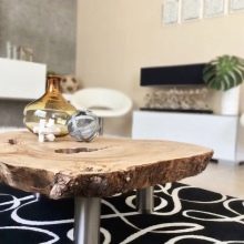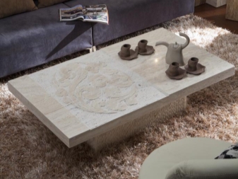 Маси с каменен плот или парче, изработено от един материал, са най -добрият вариант за тези, които искат да се чувстват напълно в едно с природата. Това са нестандартни опции за декорация на стаи, най-често се срещат в една единствена изключителна форма..