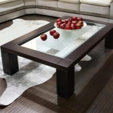 - Маса със стъклен плот под формата на витрина. Тук обикновено се съхраняват напитки.