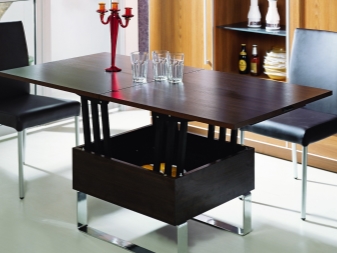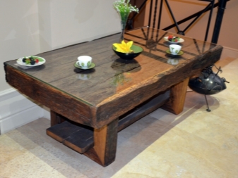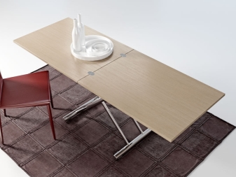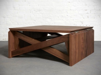 Също така, маси могат да бъдат произведени от необичаен материал – естествена кожа, трион, изрязан от дърво, има и напълно необичайна комбинация от материали. Такъв продукт първоначално служи като декорация, която изисква най -внимателно отношение към себе си..