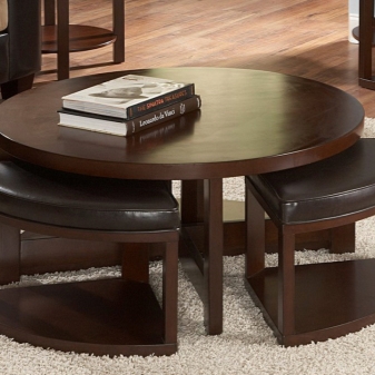 - Модулни модели. Формата на елементите на масата може да бъде кръгла, овална или друга конфигурация, но заедно всички тези части се считат за един продукт. Всяка част се движи на колела и се счита за завършен отделен елемент.