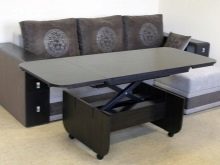 - Прикрепените конструкции са подредени по такъв начин, че плотът за маса е разположен над зоната за сядане, а поддържащата му част “отива” под дивана.