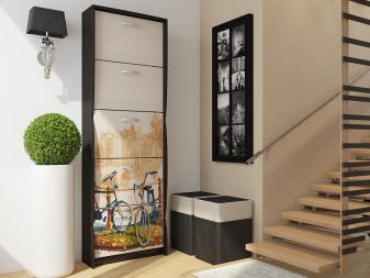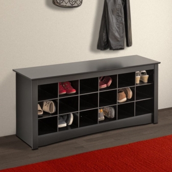 Шкаф за обувки е направен от външна рамка от ПДЧ и рафт с преден панел и прегради. Височината му се измерва с няколко рафта, а ширината му е максималният размер на кутията за обувки.