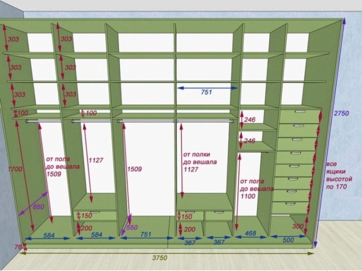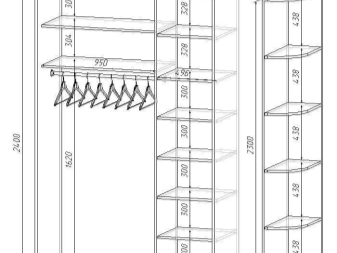 - Изчислете проектните параметри: ширина, височина и дълбочина, пространство между рафтовете, брой рафтове, куки, закачалки или други аксесоари.