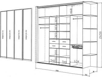 Дизайнът и вътрешното съдържание на шкафа зависят от предназначението на помещението и необходимата функционалност..
