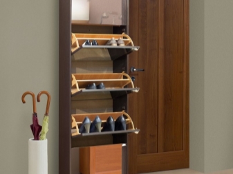- Обувка. Има два вида структура за съхранение на обувки. Първият е като неразделна част от килера за съхранение на дрехи. Вторият – като отделен скрин, върху капака на който могат да се съхраняват ключове, ръкавици, шапки и други дребни неща. Не е задължително рафтовете да са дървени – възможно е да изберете вида на цедка за съдове. Решетъчните рафтове, изработени от метал, съчетават функционалност с атрактивен външен вид. Не забравяйте да оставите дъното на шкафа отворено, в противен случай излишната вода ще се натрупа вътре. Дълбочината на рафтовете трябва да съответства на дължината на кутията от най -големия чифт обувки във вашия апартамент..