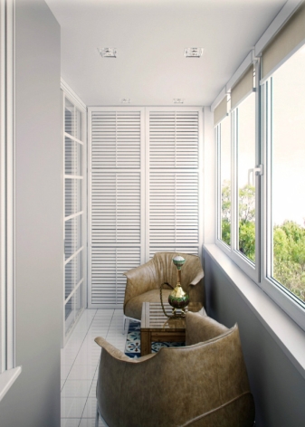 Стандартната дълбочина на шкафа на балкона е 600 милиметра, а ширината съответства на ширината на помещението. За да се поддържа структурата стабилна, височината се задава от пода до тавана без пропуски. Разстоянието между рафтовете обикновено е не повече от 400 милиметра. Вратите се сглобяват от дъски, които са фиксирани към рамката вертикално или хоризонтално, или са поставени според принципа на шипа.