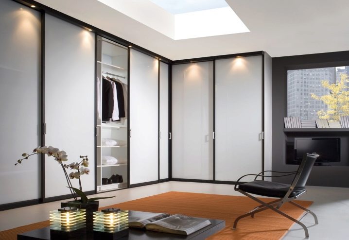 Започнете инсталирането на ъгловия шкаф, като прикрепите металните ъгли към стените и тавана, което допълнително ще освободи вратите от изкривяване. След това сглобете рамката, поставете бегачите, монтирайте вратата и вътрешното “съдържание”. Ъгловите шкафове са триъгълни, Г-образни, трапецовидни и петстенни.