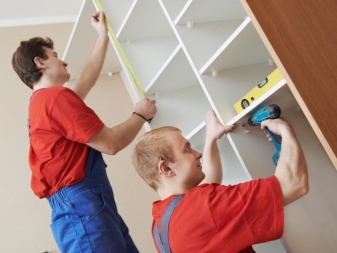 Допълнителни рафтове се сглобяват. Обикновено те са прикрепени към специални ъгли и сглобени отдолу нагоре. Ако рафтовете са сложни (например с прегради), по-добре е да ги съберете на пода и след това да ги монтирате готови в шкаф.