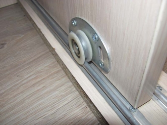 Когато и двете врати са на място, уверете се, че са равни. Ако е необходимо, регулирайте позицията на долния профил. След това можете да прикрепите долния водач. Последният щрих е залепването на специални четки на вратите отстрани, което ще смекчи ударите на вратите по стените на шкафа.