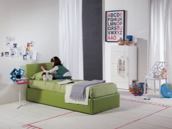 Не забравяйте за особеностите на цветовете и текстурите при избора на единично легло, тъй като сянката и материалът могат да повлияят визуално на размера на продукта. Белите мебели изглеждат много големи, дори и да не са много големи.. Такива дизайни се разреждат с текстил с подходящ орнамент или се поддържат в определена гама от цветове, които прикриват размера на мебелите..