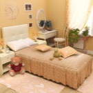 - Основно оформление на единично легло – ъгъл на стаята. Тази опция за оформление е най -компактната, спестява място в стаята и създава ефект на пълнота и комфорт. Той е присъщ на стиловете Минимализъм, Арт Деко, Хай-тек.