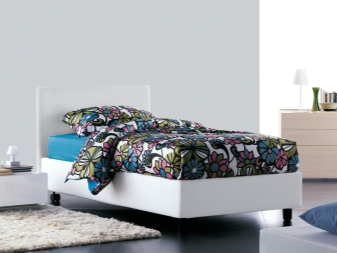 Не забравяйте за особеностите на цветовете и текстурите при избора на единично легло, тъй като сянката и материалът могат да повлияят визуално на размера на продукта. Белите мебели изглеждат много големи, дори и да не са много големи.. Такива дизайни се разреждат с текстил с подходящ орнамент или се поддържат в определена гама от цветове, които прикриват размера на мебелите..