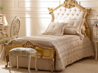 - За помпозен барок се избират предимно мебелни продукти с големи параметри, те могат да бъдат разположени не само близо до прозореца, но и в средата на стаята, заемайки основната част от него. По отношение на размерите такова легло често е еквивалентно на двойно легло, така че този стил е подходящ само за просторни стаи..