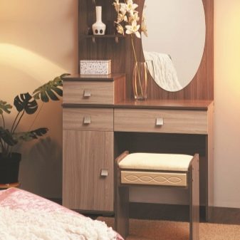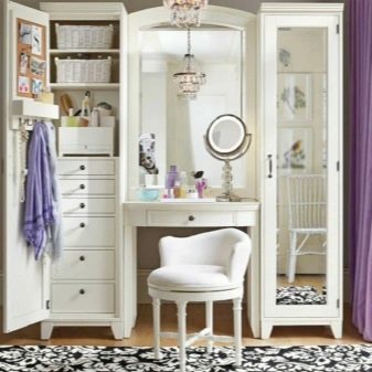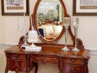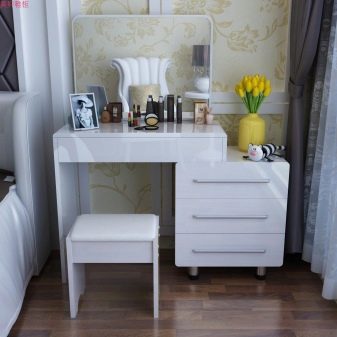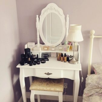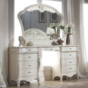 В допълнение към огледалото, размерът на тоалетката определя броя на чекмеджетата и рафтовете в нея. Изобилието им може да побере много аксесоари. Мярката обаче трябва да се спазва. Масата може да изглежда твърде обемиста и безвкусна, за да изглежда в интериора..