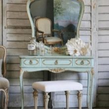 - Тоалетка-трансформер. Може да има огледало, което, ако е необходимо, се отстранява вътре в плота на масата. Така масата може да се използва за друга цел – за работа или хранене. Има модели, които се превръщат в ниски масички за кафе – много компактно решение.
