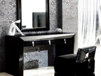 - Стъклото от кей за еклектичен стил също трябва да комбинира мебели, които не си пасват помежду си. Поети са напълно противоположни посоки: високотехнологични и ориенталски мотиви, класика и етно. Насърчава се използването на антики в комбинация със съвременни модели. Интересно решение е тоалетката да се използва за други цели: като бюро или като стойка за цветя или оборудване.