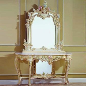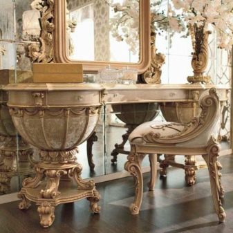 - Бароковата тоалетка съдържа много детайли. Такава винтидж тоалетка изглежда много театрално. Краката, като правило, имат сложна, усукана форма.