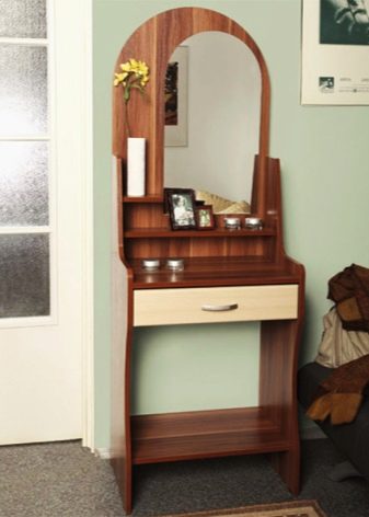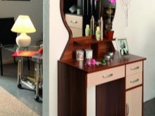 За малки помещения са подходящи тесни малки модели. В този случай можете да изберете трансформиращ се скрин, скрин с ниша за сядане, скрин с независимо огледало, който може да бъде преместен на друго място или окачен на стената..