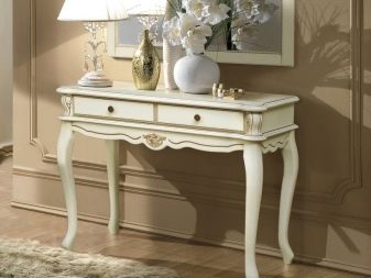Най -често срещаният цветен вариант е бяла тоалетка.. Масата изглежда много елегантна в бял или светъл дизайн, допълнена от ковани елементи или декоративни резби, в ретро интериор.