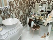 - Тоалетката изглежда добре в интериора на различни стаи: в спалнята, в банята, в коридора.