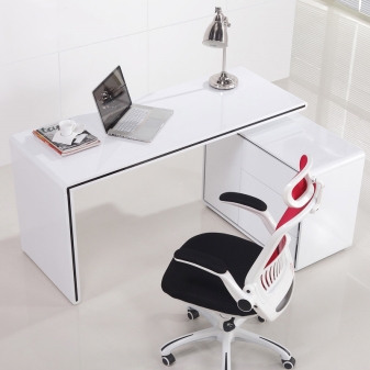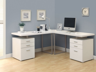 - в повечето модели, освен място за работната зона, той предвижда поставяне на компютърно оборудване на повърхността посредством допълнителни отделения и рафтове;