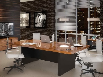 Офисните модели са направени без позоваване на статуса и не са склонни да демонстрират благосъстоянието на собственика. В по-голяма степен те се подчиняват на строга функционалност, са по-евтини от премиум колегите, различават се с линейна и ъглова форма, както и с голям брой просторни рафтове и чекмеджета с отворен, затворен, издърпващ се тип над масата.