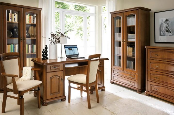 Античните модели са на мода, както и имитацията им на високо ниво на изпълнение. Въпреки че такива мебели са по -скъпи от аналозите, те са много популярни във вътрешността на кабинет или библиотека. Чрез благородството на дървото и скъпия декор, той придава на стаята леко докосване на древността и подчертава изискания вкус на собствениците на къщата..