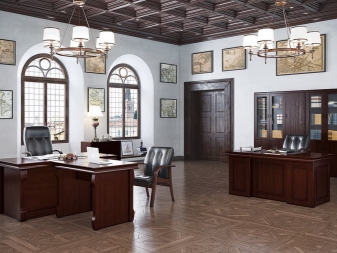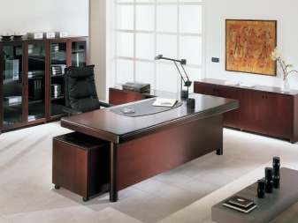 Моделите на шкафове са признати за едни от най -добрите, изглеждат представителни, масивни, могат да имат дебели плотове, специален статус завършване и впечатляващи размери, като същевременно не забравяме предназначението си – да създадат максимален комфорт и удобство за дългосрочна работа. Това са модели на линеен план с доста дълъг плот (около 2 м), често с инкрустация под формата на наборен модел или частично покритие от кожа.