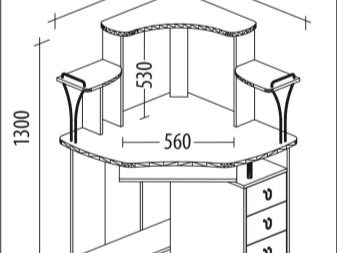Диагонални маси най -компактният, само малък квадрат в ъгъла на стаята е необходим за тяхното инсталиране, но функционалността на такива модели е ниска, те имат по -малко чекмеджета; надстройките на масата не могат да бъдат големи, за да не блокират светлината от прозореца. Струва си да се мисли особено за стойката за системния блок, в противен случай краката просто няма да имат къде да поставят, което означава, че бързата умора поради неудобна стойка е гарантирана. Диагонално-перпендикулярните модели заемат повече място, но това е повече от оправдано от тяхната функционалност.