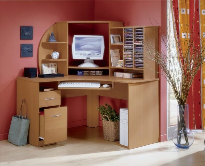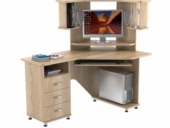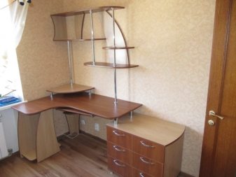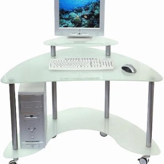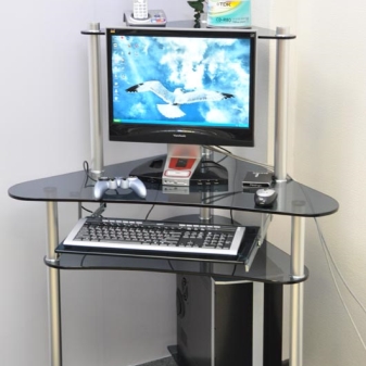 - ъгловият модел с малки размери се нуждае от рафт за клавиатурата, в противен случай просто няма да има място за работа.