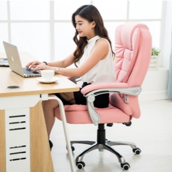 Такова кресло се вписва добре в хол или детска стая. Наистина момичешки цвят, изглежда свеж и необичаен, особено в контраст със светлия нюанс на основата и подлакътниците. Розовото кресло ще бъде чудесно допълнение към светлото компютърно бюро..