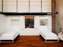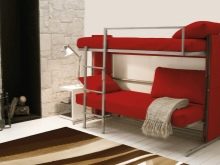 - Двуетажно легло-трансформер ще бъде чудесен вариант за две деца в семейство. Това е комплексно дизайнерско решение, което включва не само самите места за спане. Лесно е да си представите такова легло с нощни шкафчета и рафтове, които благодарение на внимателно обмислената композиция хармонично се вписват в цялостната картина..